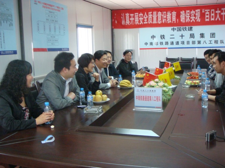 调研组还深入到中铁二十局四公司中南通道项目部与项目经理、项目书记等领导进行了现场座谈,深入到中南通道项目的隧道施工现场了解施工工艺,在项目部与正在工地上进行现场教学的系部员工进行了座谈交流。