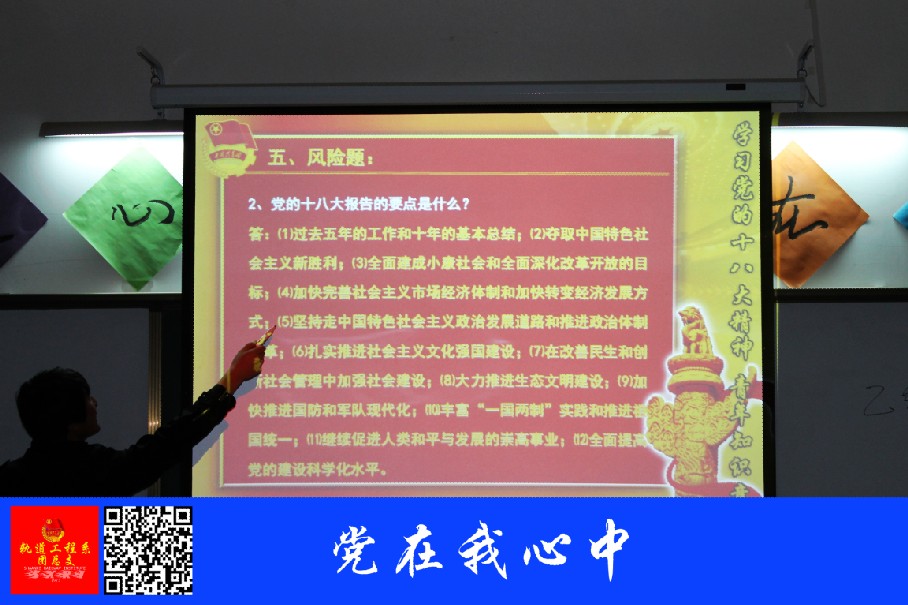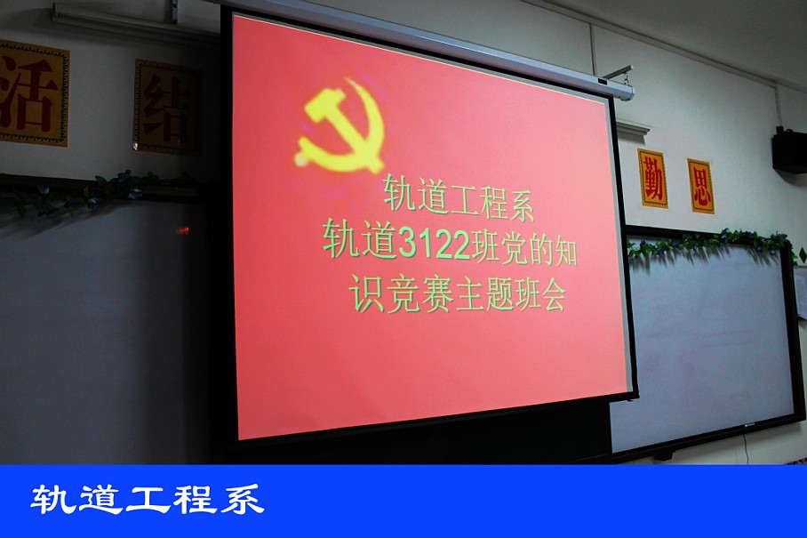 4月8日,轨道工程系各班在教室举办了“党在我心中”主题知识竞赛,本次竞赛得到同学们的积极参与。知识竞赛赛以必答题、抢答题、风险题为比赛形式,试题紧紧围绕中国共产党第十八次全国代表大会精神,以《中国共产党章程》为基础,以时事政治为载体,紧跟时代的脚步。