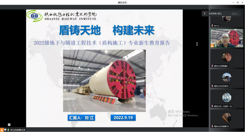 为迎接2022级地下与隧道工程技术(盾构方向)新生入学,指导新生尽快了解盾构专业特色及就业方向,9月19日晚,太阳成集团tyc33455cc盾构教研室举行主题为“盾铸天地 构建未来”新生教育报告会。会议由教研室主任刘江主持,陕西省盾构技能大师曾宇翔、盾构党支部副书记宋婷、教研室副主任张小力等教师代表及2022级盾构专业352名新生共同出席,会议以线上腾讯会议形式举行。