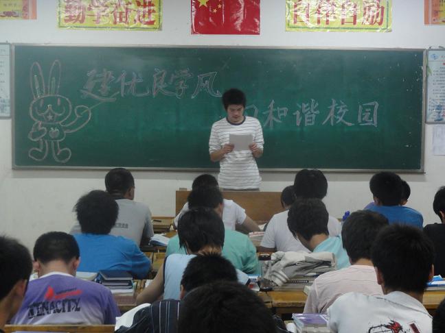会议共有三个流程,首先,由学习委员井磊对过去一年里班里的学风建设情况进行总结发言,提出新一年里班里如何做好学风建设工作的一些计划;其次,由班里同学积极发言,针对如何加强班里学风建设的工作问题,积极提出自己的建议;最后,由团支书段晓梅针对同学们所提出的积极建议和意见,作总结性发言,并根据班里同学所提出的意见和建议,制定我班在新学年里学风建设工作开展计划。
