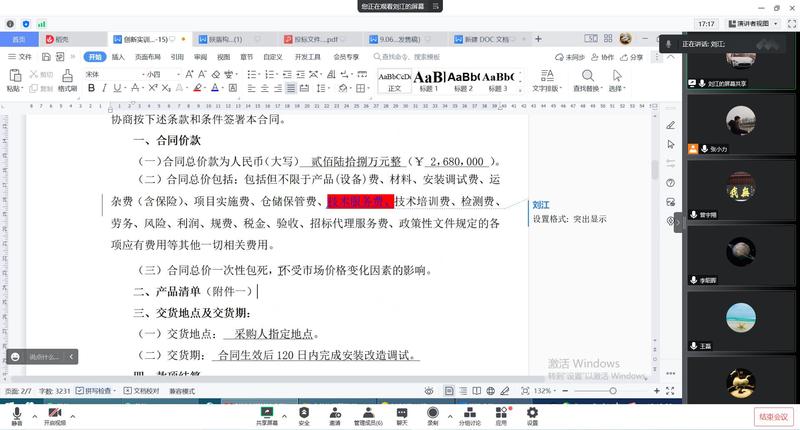 。2022年10月12日星期三下午,盾构教研室通过腾讯会议方式召开2022-2023年度第一学期第3次教研室会议,会议由张小力老师主持,参会人员包括曾宇翔、李昭晖、郭军、王磊、刘江。此次会议主要审议了《盾构创新实训基地升级改造项目合同》文本内容并对文件修改提出建议及意见。参会人员针对“货物清单”、“款项结算”、“双方的权利和义务”、“质量保证”、“售后服务”、“违约责任”、“验收”等十二项条款逐句斟酌,结合招招标文件与投标文件等实质性内容进行修改与讨论,力争在最短时间内完成盾构创新实训基地升级改造项目的合同签订,为提升公司实训教学水平及“双高”建设服务。