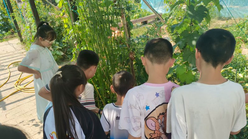 在志愿者的带领下,孩子们兴致勃勃地走进菜园,开启了一场自然探索之旅。老师,这个圆圆的叶子是什么呀?红红的果实可以吃吗?孩子们像出笼的小鸟,不断提出各种问题,眼中闪烁着求知的光芒。志愿者们耐心解答,向孩子们介绍各种植物的特性和生长习性,满足他们对大自然的好奇心。