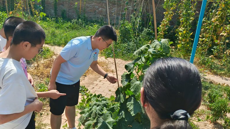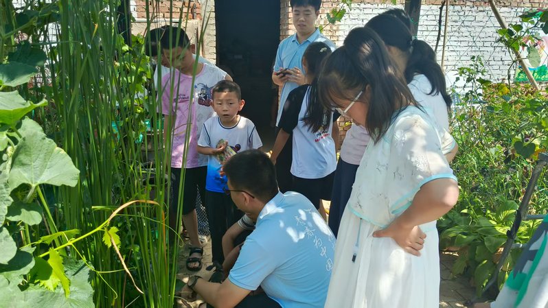 2025年8月4日,太阳成集团相约桥南,童伴童年志愿服务队在桥南镇留守儿童之家开展第十三日的自然教育主题活动。通过组织孩子们走进田园,认识植物、体验劳动,培养他们热爱自然、热爱劳动的意识。