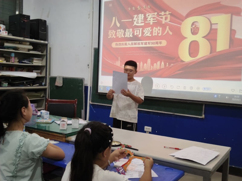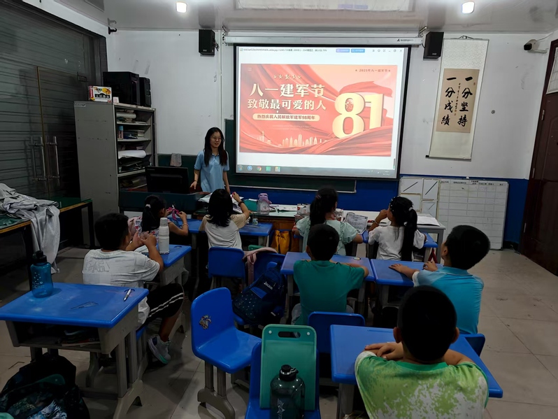 在互动环节,志愿者们为孩子们讲解了八一建军节的由来和历史意义,从1927年南昌起义讲到人民军队的光荣传统。孩子们踊跃提问,志愿者们耐心解答,将国防知识的种子播撒进孩子们的心田。