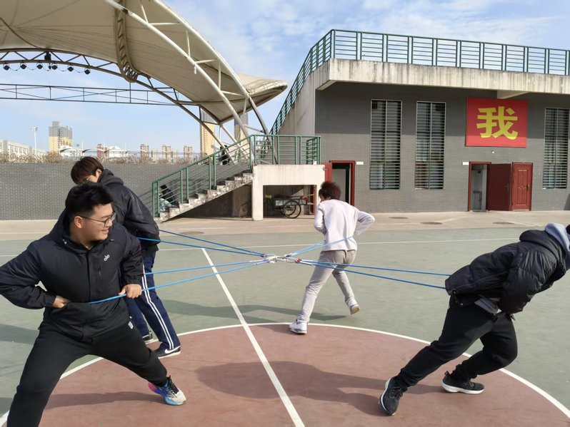 “默契击鼓”环节,每5人一组,协作颠球,同学们通过眼神交流调整节奏,在失误与调整中体会协作真谛;“多向拔河”环节,队员们紧握长绳、相互鼓劲,在力量较量中打破隔阂。