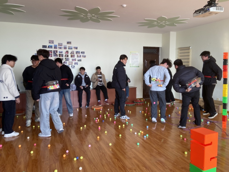 本次活动将“合力搭建”的协作性与“公鸡下蛋”的趣味性串联成连贯挑战,既考验团队配合能力,又能帮助大家有效放松身心,实现“在协作中凝聚,在趣味中减压”的活动目标。活动现场氛围热烈而融洽,“班级守护堡垒” 一体化挑战环节中,班委们迅速组队、分工协作,从创意构思到实践落地,在协作搭建中充分沟通、互帮互助,既展现了高效的团队执行力,又加深了彼此的理解与信任;随后的趣味抖蛋环节更是将氛围推向高潮,平日里严谨负责的班委们彻底卸下压力,在轻松诙谐的比拼中尽情释放活力,现场笑声、加油声此起彼伏。活动尾声,班委们围坐交流感受,纷纷表示此次活动形式新颖,不仅有效缓解了近期的学业与工作压力,更在互动中增强了团队默契与凝聚力。